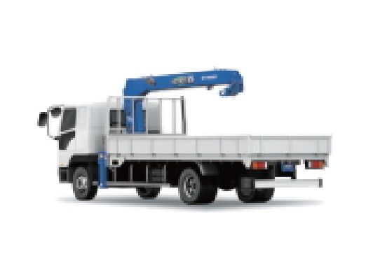 積載型トラッククレーン。トラックのキャブの後ろなどに小型のクレーンを架装したもので、吊り荷作業や貨物積載、運搬作業が、一台で行えます。クレーンの中でも、最も幅広い架装対応シャーシと豊富なクレーンのラインナップを取り揃えています。